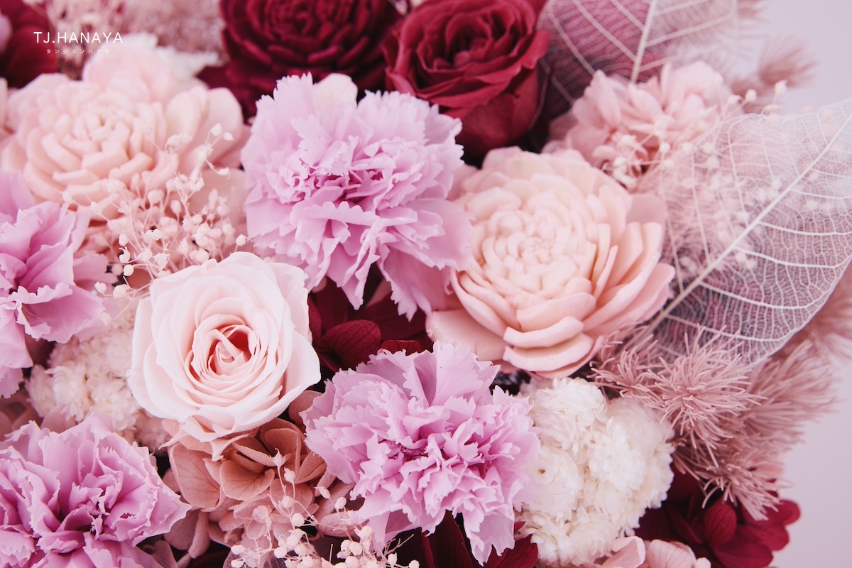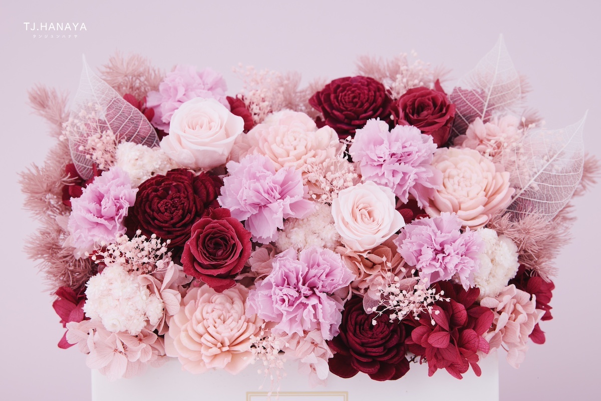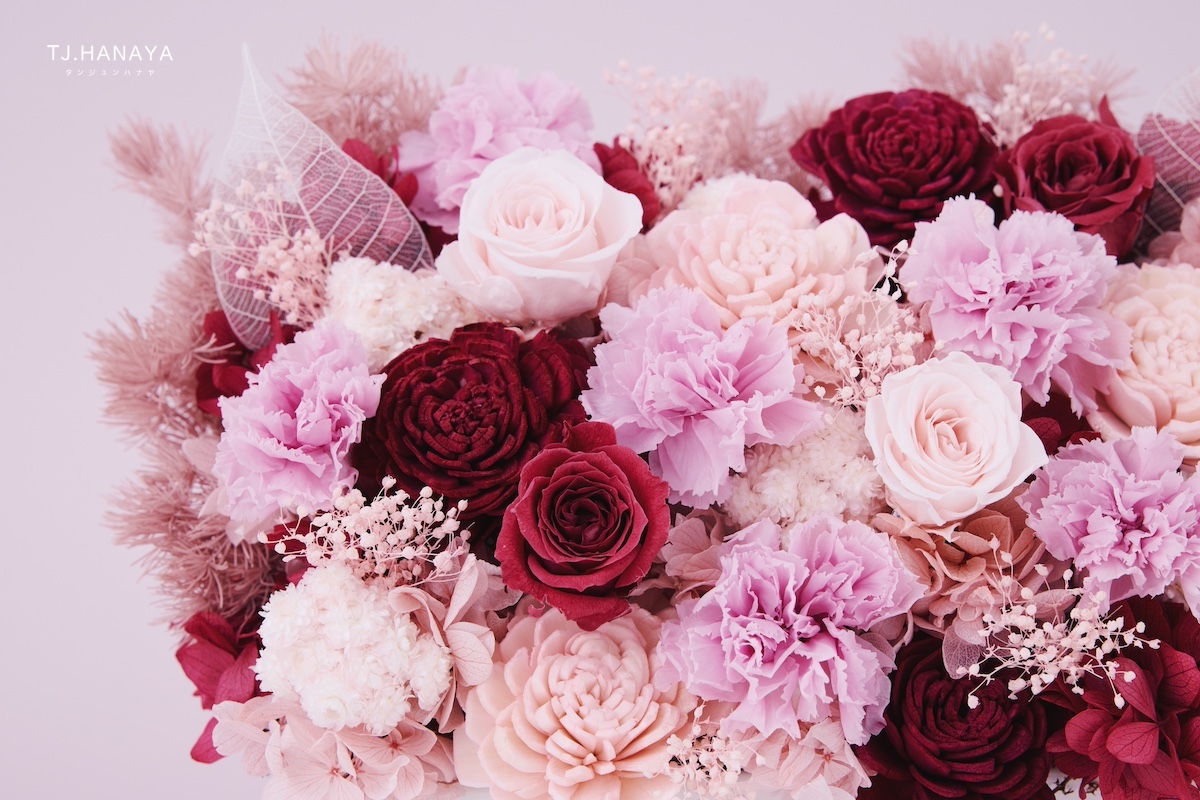 - 選用日本進口永生花製作,不用澆水、不需特別照顧,也能長時間保留花禮的美感與紀念意義。
