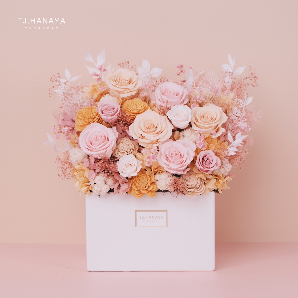 - 永生花為鮮花製作而成,每一朵花的大小、姿態、花型與綻放角度皆會因自然生長而有所差異,因此同款作品出現些微不同屬正常現象,也正是天然花材的獨特之處。