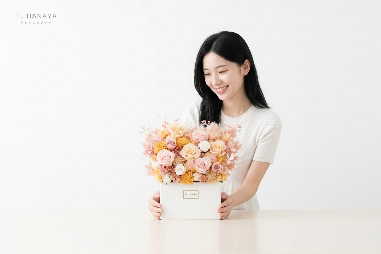 - 永生花花瓣質地較脆,建議避免頻繁觸摸、擠壓或搖晃,以免造成掉屑或變形;若需移動花禮,請托住底座或盆器,不要直接抓花頭或拉扯花瓣。