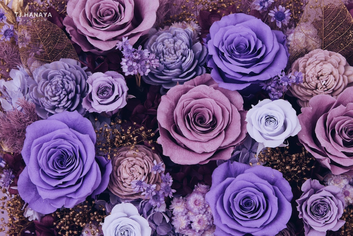 - 永生花建議放置於通風涼爽、室內溫度穩定的位置,請避免擺放在悶熱處、電器散熱附近、車內或陽光直射、聚光燈長時間照射的環境,以免加速褪色、乾裂或變形。