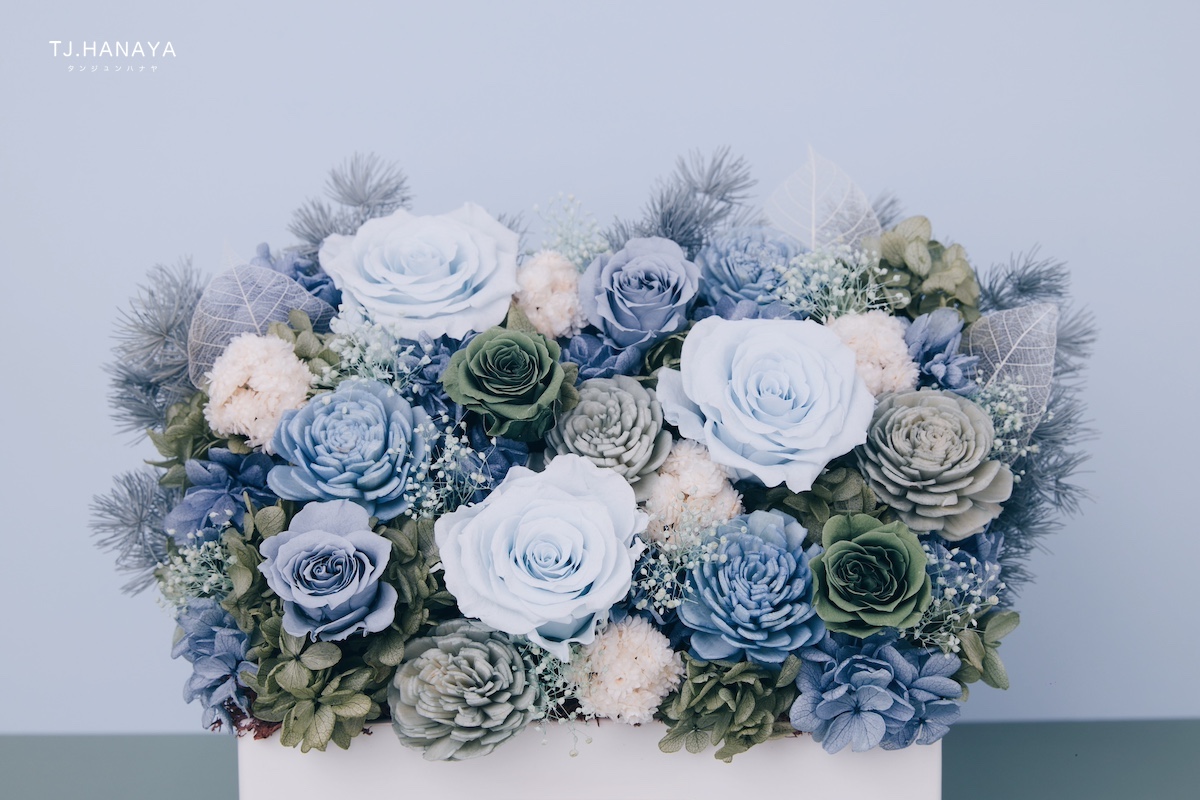 湖水綠永生玫瑰盆花送開幕寓意是什麼?