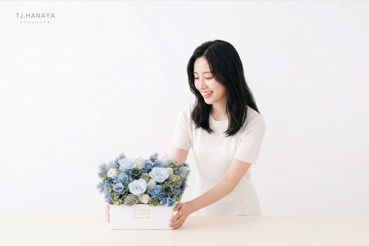 - 永生花建議放置於通風涼爽、室內溫度穩定的位置,請避免擺放在悶熱處、電器散熱附近、車內或陽光直射、聚光燈長時間照射的環境,以免加速褪色、乾裂或變形。