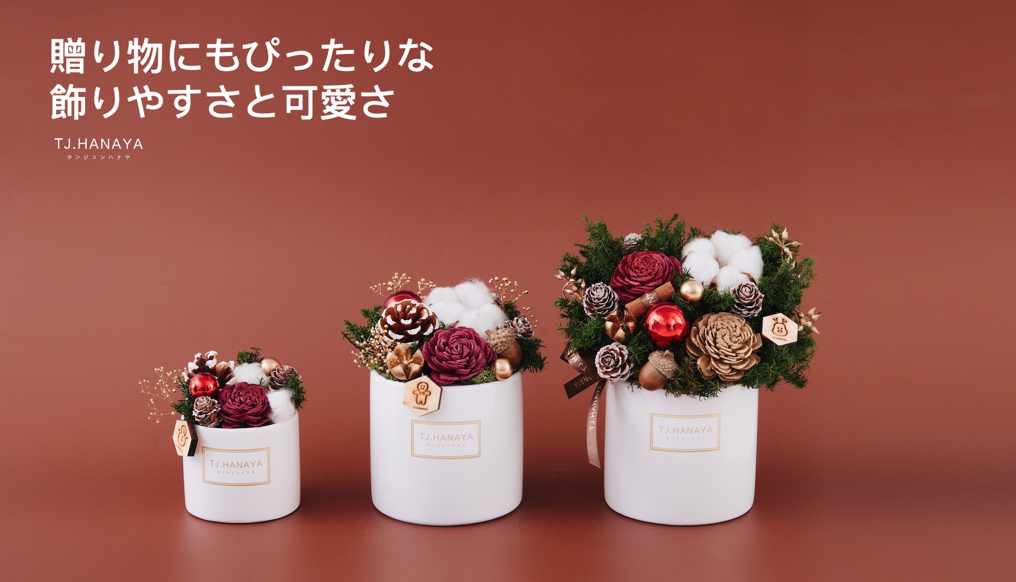 象徵含意: 這是聖誕系列中最百搭的一款,以「冬日裡的花」為概念,象徵溫暖、陪伴與長久祝福。不論擺在家中、門市或辦公空間,都能自然融入氛圍、增添節慶感。尺寸選擇多元,能靈活運用於各種場景。